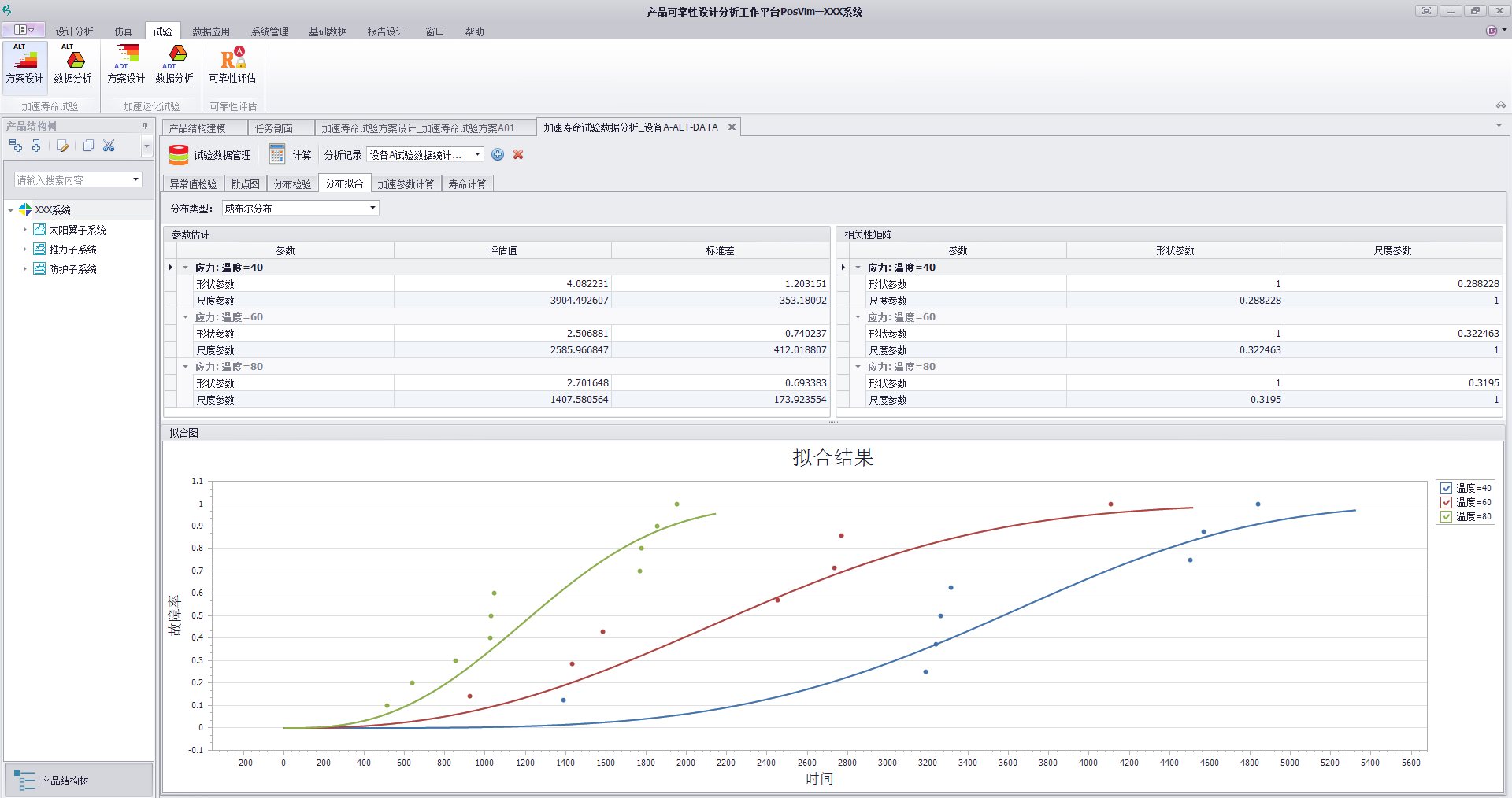 ※加速壽命試驗數(shù)據(jù)處理支持散點圖、異常值檢驗、分布檢驗、分布擬合、加速參數(shù)計算、壽命計算功能。